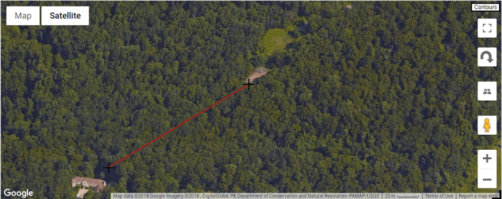 Path of 500 foot Beverage On Ground. Feedpoint is at upper right.